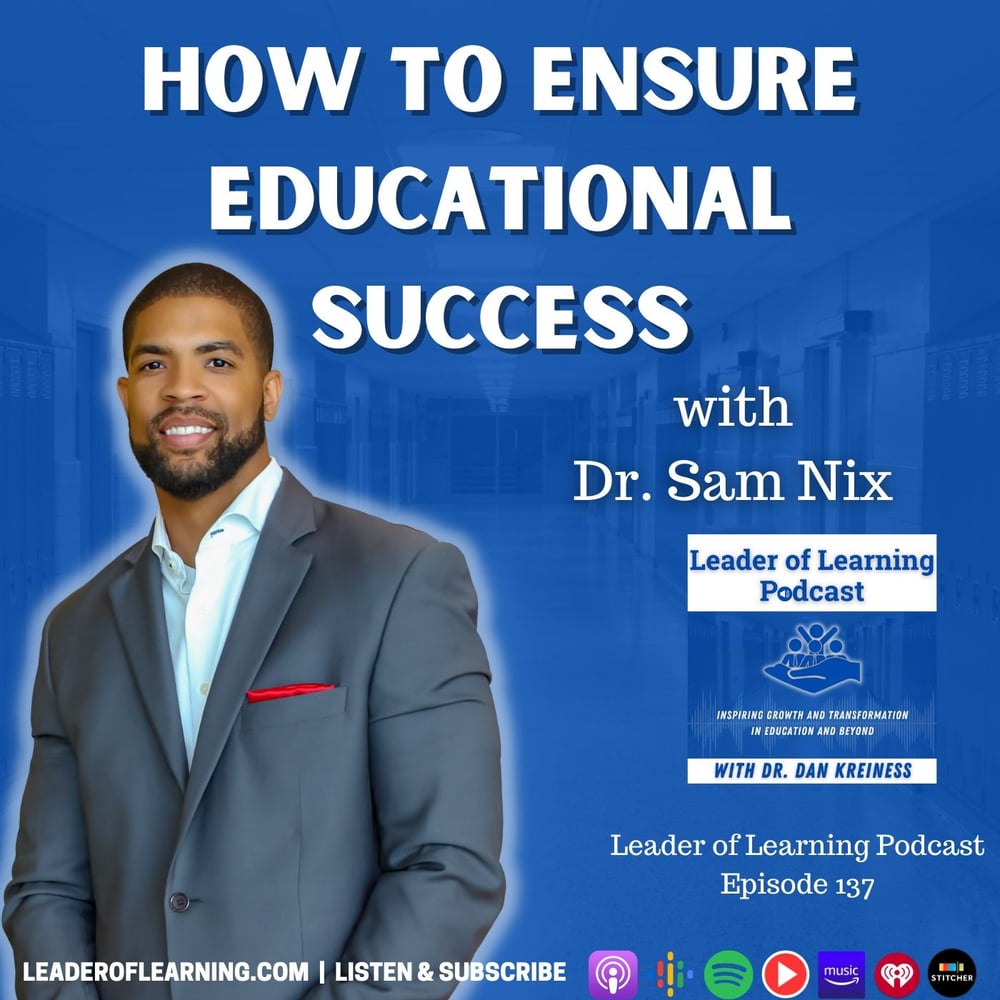In episode 137 of the Leader of Learning Podcast, Dr. Dan Kreiness (@dr_kreiness) interviews Dr. Sam Nix (@_SamuelNix), Chief of Schools in the Duncanville Independent School District, 2015-2016 Principal of the Year in the Arlington Independent School, and author of the book, “Ensure Educational Success.” In the episode, Dr. Nix discusses a six-step leadership cycle to facilitate sustainable learning and teaching success in your school, how to teach Learners, not students, and how to staff your school for success by hiring the right teachers for your culture and vision.