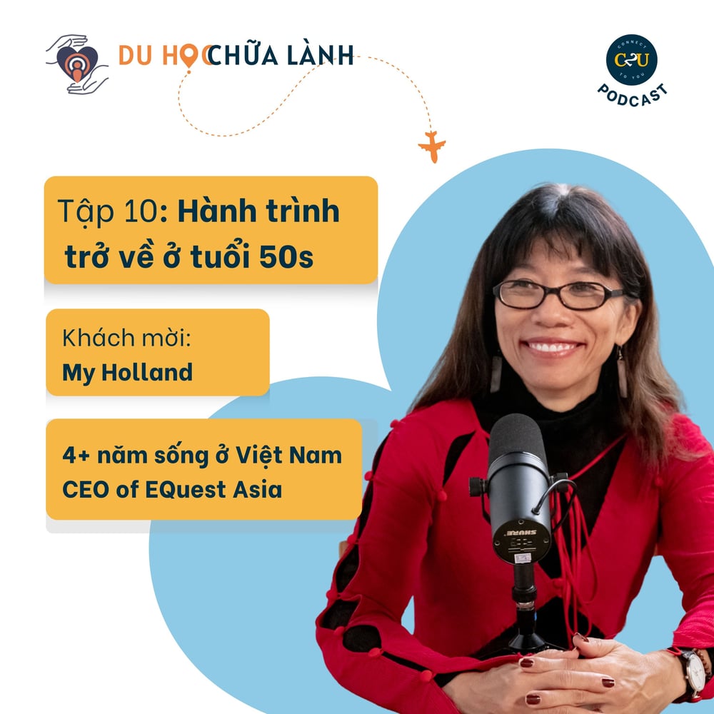 Ví dụ như chỉ bằng vốn từ ngữ tiếng Việt, chị My Holland gần như bị “nhận diện” ngay lập tức là một người Việt “nhưng chưa hoàn hảo” (Imperfect Vietnamese). Từ đó chị nhận ra sự khác biệt giữa “tai nghe” ngôn ngữ của dân bản xứ ở mỗi đất nước - khái niệm “flexible ears” mà các bạn sẽ được giải thích trong chính tập podcast này. Hay chúng ta sẽ bàn sâu xa hơn câu chuyện về cội nguồn, về lý do vì sao người phụ nữ trưởng thành và thành công này lại quyết định mang cả gia đình đến sống tại Việt Nam. Tập 10 đã có mặt trên các nền tảng podcast Du Học Chữa Lành, tại các link bên dưới, click vào ngay để lắng nghe câu chuyện của chúng tôi nhé!