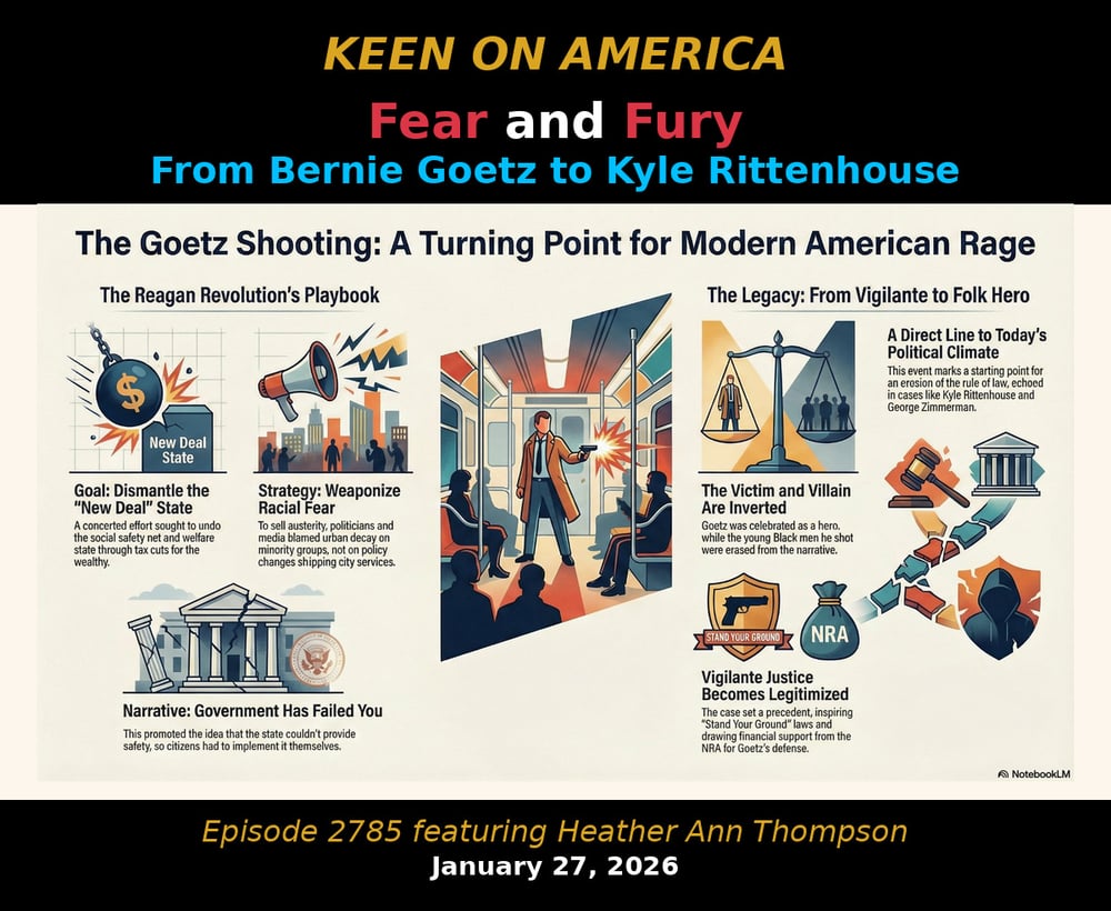 New books are like London buses. You wait and wait and then a handful comes at the same time. Take, for example, histories of the New York City vigilante Bernie Goetz. Last week, we featured the CNN legal analyst Elliott Williams who has a new book out on Goetz. And now we have another uncannily timely book on Goetz. This one from the Pulitzer-Prize winning historian, Heather Ann Thompson. Entitled Fear and Fury, Thompson focuses on the 1984 New York City case in the genealogy of white rage in America, tracing the Goetz shootings back to the Reagan Eighties as well as white vigilantes in the Trump era like Kyle Rittenhouse. What ties Goetz and Rittenhouse together, Thompson argues, is the inversion of victim and villain in a brutal haze of violence. And, of course, we can now see this tragic narrative repeated on the streets of Minneapolis. It’s as if Bernie Goetz and Kyle Rittenhouse are now working for ICE.