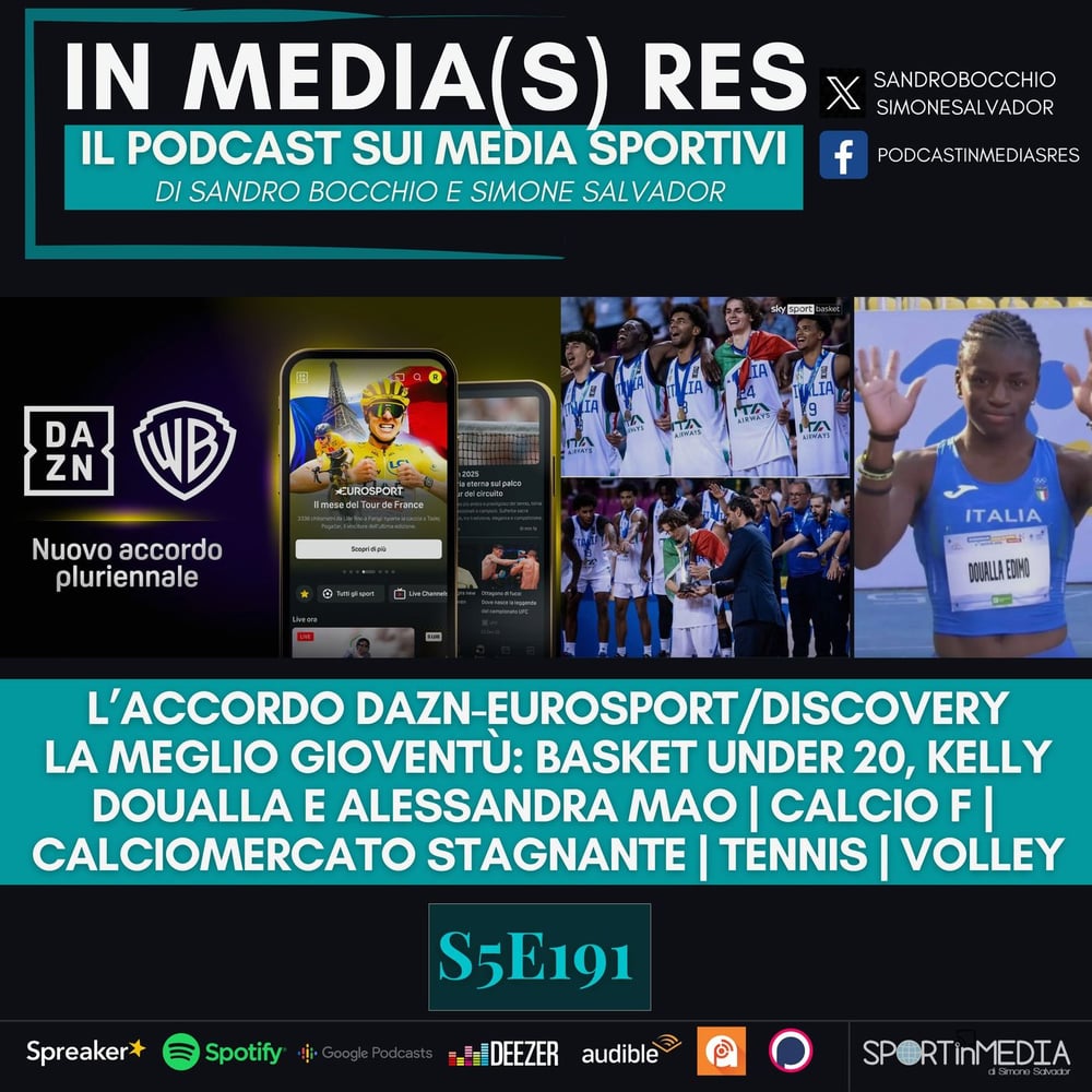 S5E191 | L'accordo DAZN-Eurosport/DIscovery+, Calciomercato stagnante, La meglio gioventù (Basket U20, Doualla, Mao), Tennis, Volley image