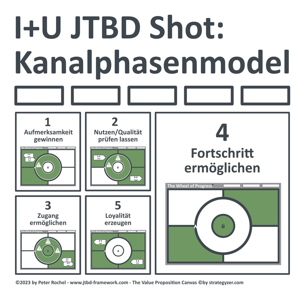Das Kanalphasenmodell, entwickelt von Peter Rochel, ist ein effektives Werkzeug, um aus deinem Jobs-to-be-Done-Research den maximalen Nutzen zu ziehen.